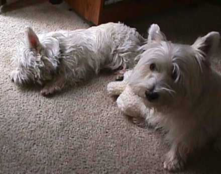 "I'll trade you my stuffed toy for your bone, Hallie..."